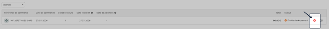 🚨 Si la croix rouge n’apparaît plus, cela signifie que la commande a déjà été traitée par notre service financier. Dans ce cas écrivez-nous à support-rh@worklife.io