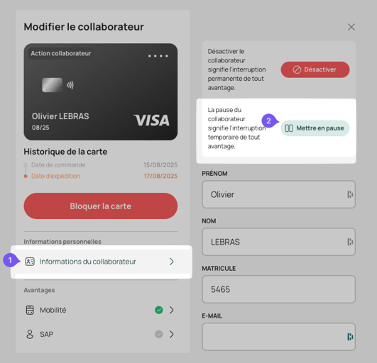 4. Cliquez sur Informations du collaborateurMettre en pause.