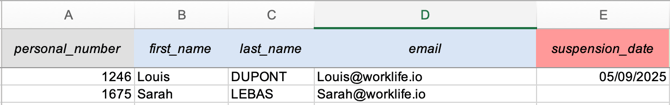 suspension_date→ Date de suspension du salarié.