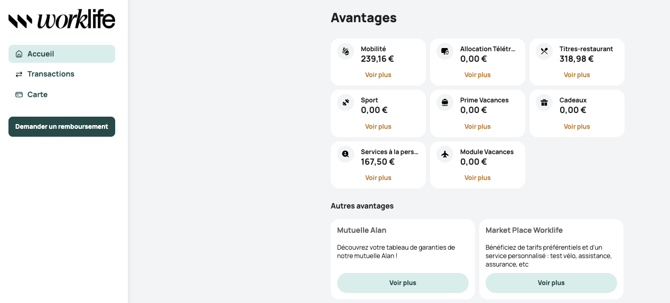 La webapp offre les fonctionnalités principales de votre application Worklife mobile :